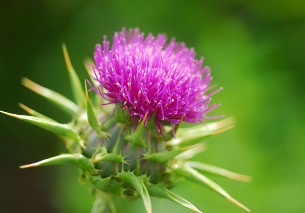 With its large purple flower heads, milk thistle is a member of the sunflower family. Native to the Mediterranean, it now grows wild in many other parts of Europe including the UK.